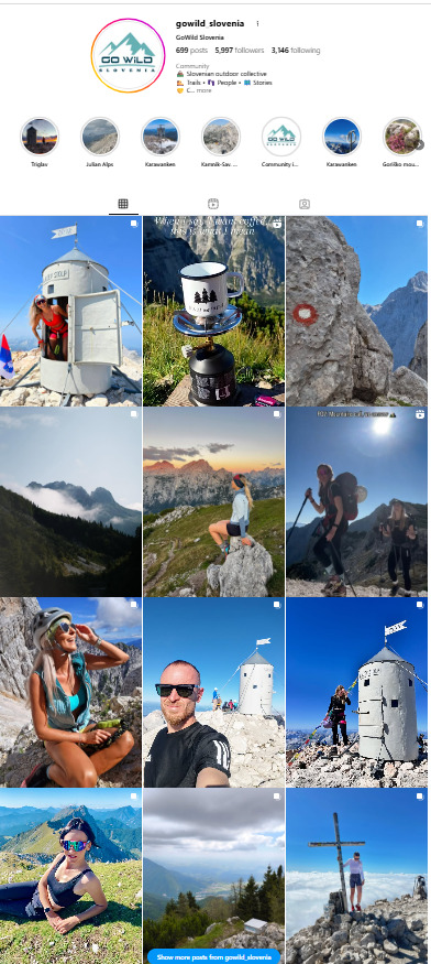 GoWild Slovenija je projekt, ki združuje ljubitelje gora, pohodništva in naravnih doživetij v enotno digitalno skupnost. Cilj je graditi avtentičen kanal, ki preko organskih vsebin povezuje pohodniške poti, planinske koče in destinacije s ciljnim občinstvom, ki išče aktivni oddih, navdih in pristne izkušnje v naravi.